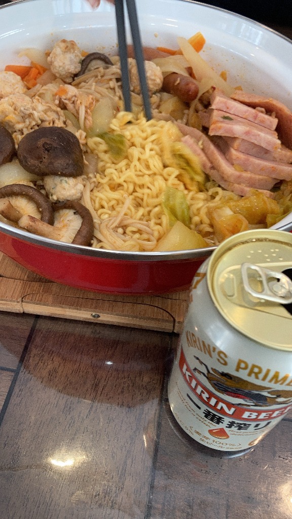 友達がこんなお鍋の元あったから一緒に食べようと言ってくれたお鍋パーティー