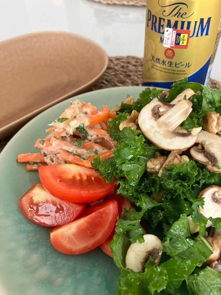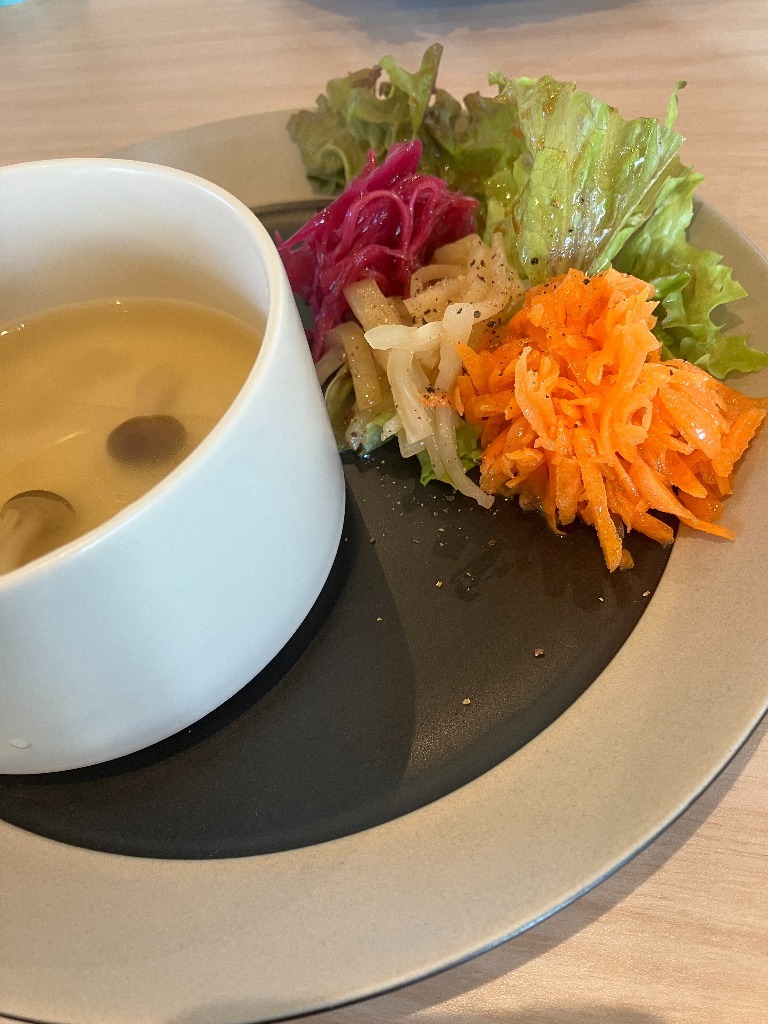 ケールのサラダがものすごく美味しいし、ニンジンもゴリゴリしててめっちゃ好みでした。
