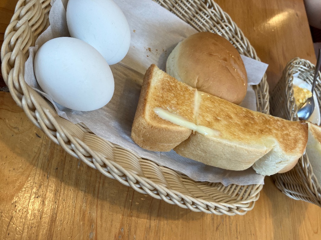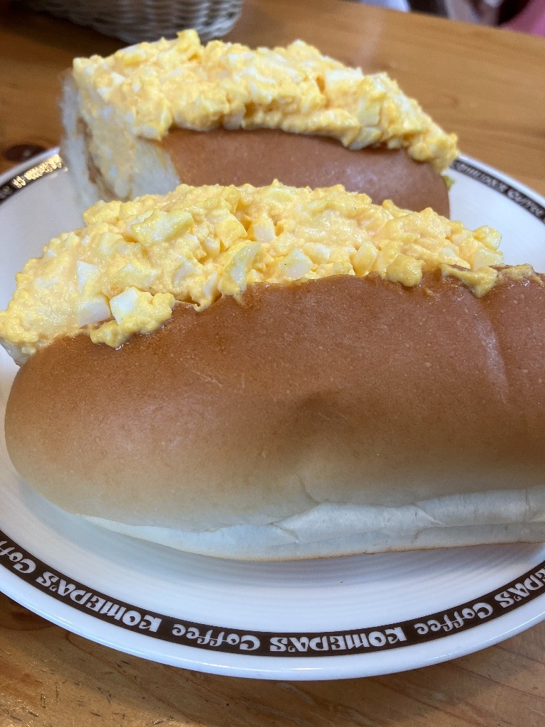 無料でついてくるトーストだけじゃ足りなくて、卵サンドも追加しました。