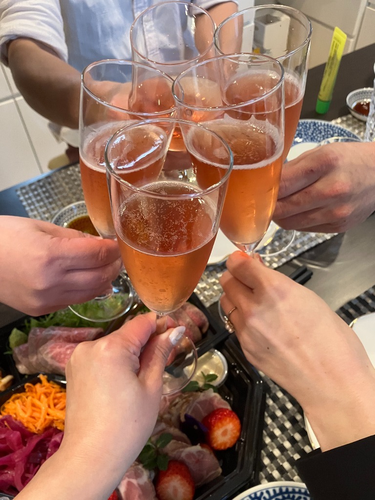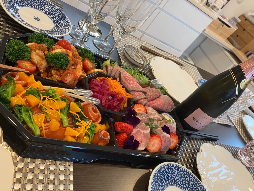 朝から着付けにヘアセットに忙しかったので子供たちはお寿司のテイクアウト、大人はオードブルをテイクアウトしてがっつり飲みました。