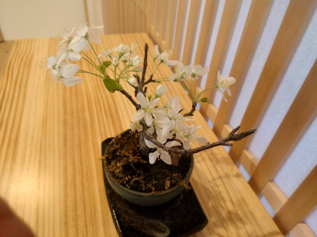 少し前からリンゴ?の盆栽にハマってまだかまだかと咲くのを心待ちにしていたご様子。