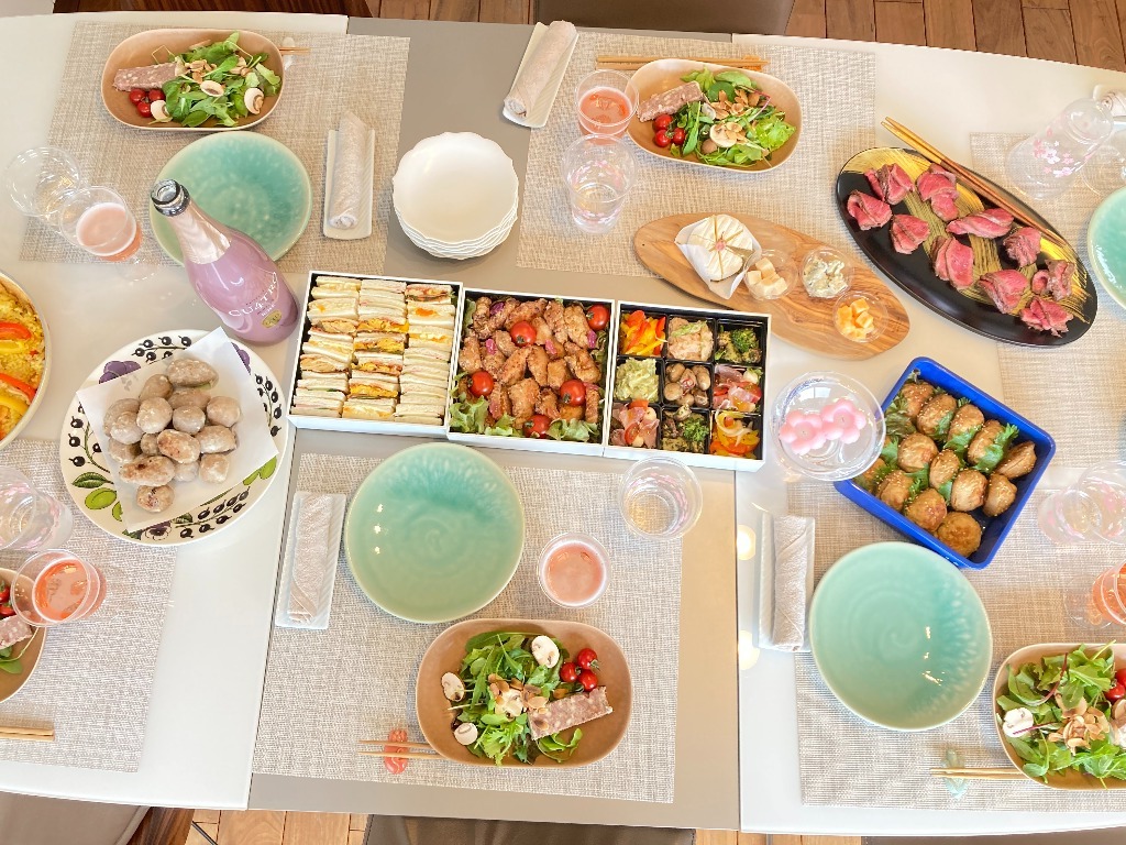持ち寄りパーティーでもめちゃっくちゃ豪華にしてくれて桜も買ってきてくれてお部屋に飾ってくれていました。
