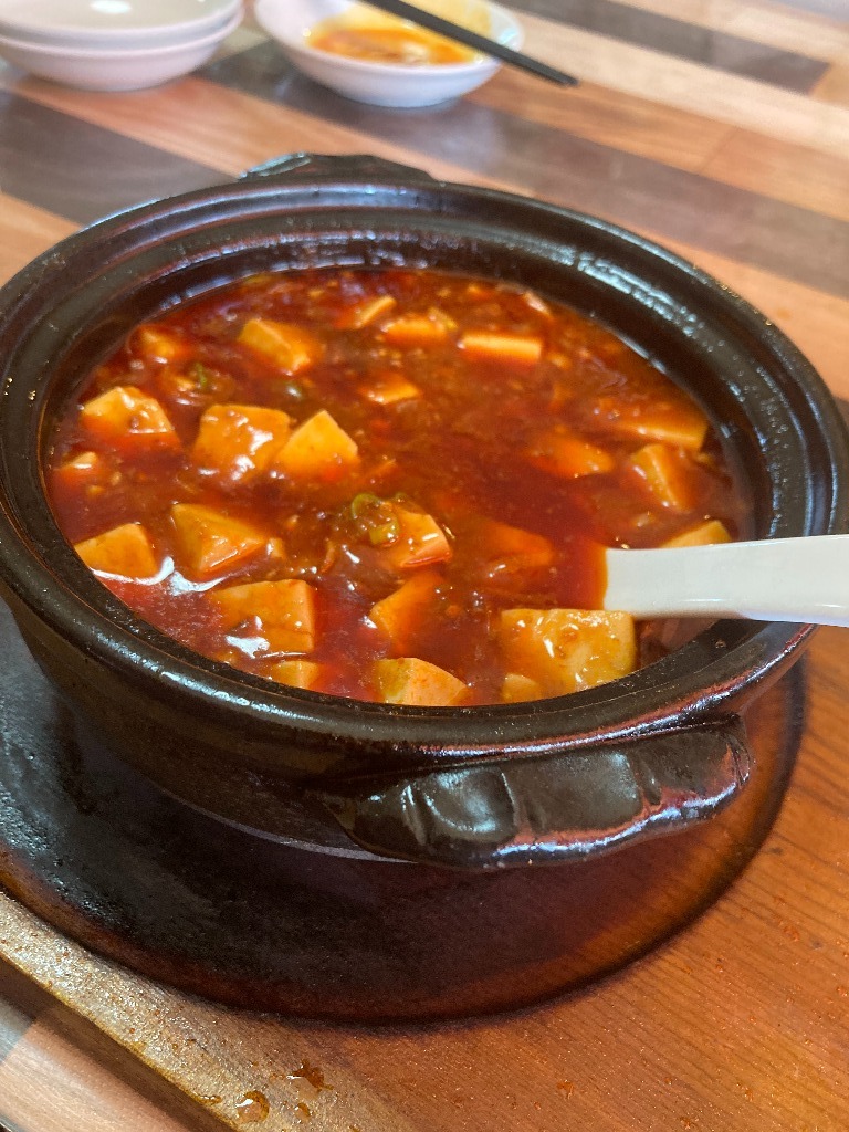 先日行ったときに張り紙で見た地獄の麻婆豆腐が食べたかったかっら。