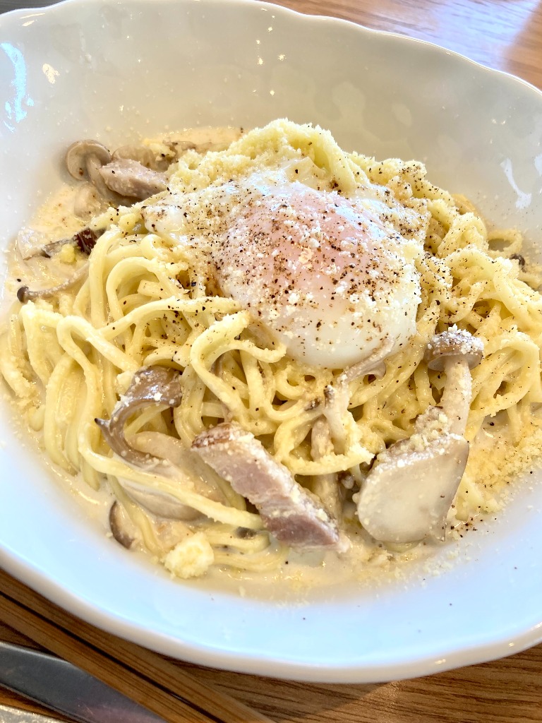 カルボナーラってほんとは生クリームを使わずにパルメザンと卵で作るんですが私は生クリームたっぷりなカルボナーラが好きです!!