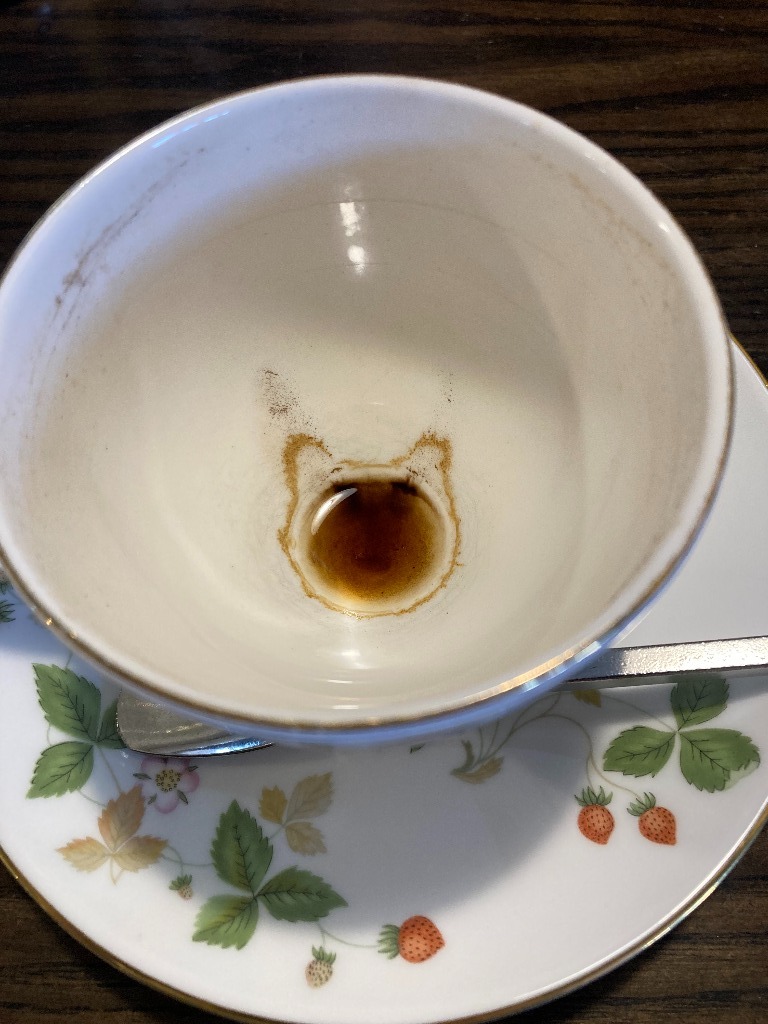 飲み終わっておしゃべりしていてふとみたら、飲み終えたカップの中にくまちゃんいるやん!!!!