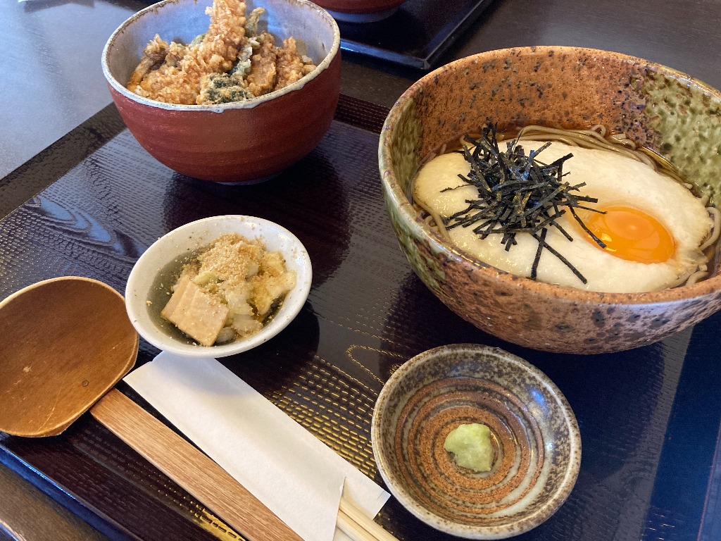 そこで頼んだものが、とろろ月見そばと天丼・・・